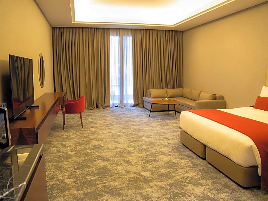 This spacious suite consists of a kitchen, a seating area, 1 separate bedroom and 1 bathroom with a bath and a shower. The suite's kitchen is available for cooking and storing food. The air-conditioned suite provides a flat-screen TV with satellite channels, soundproof walls, a mini-bar, a tea and coffee maker as well as pool views. The unit offers 1 bed.